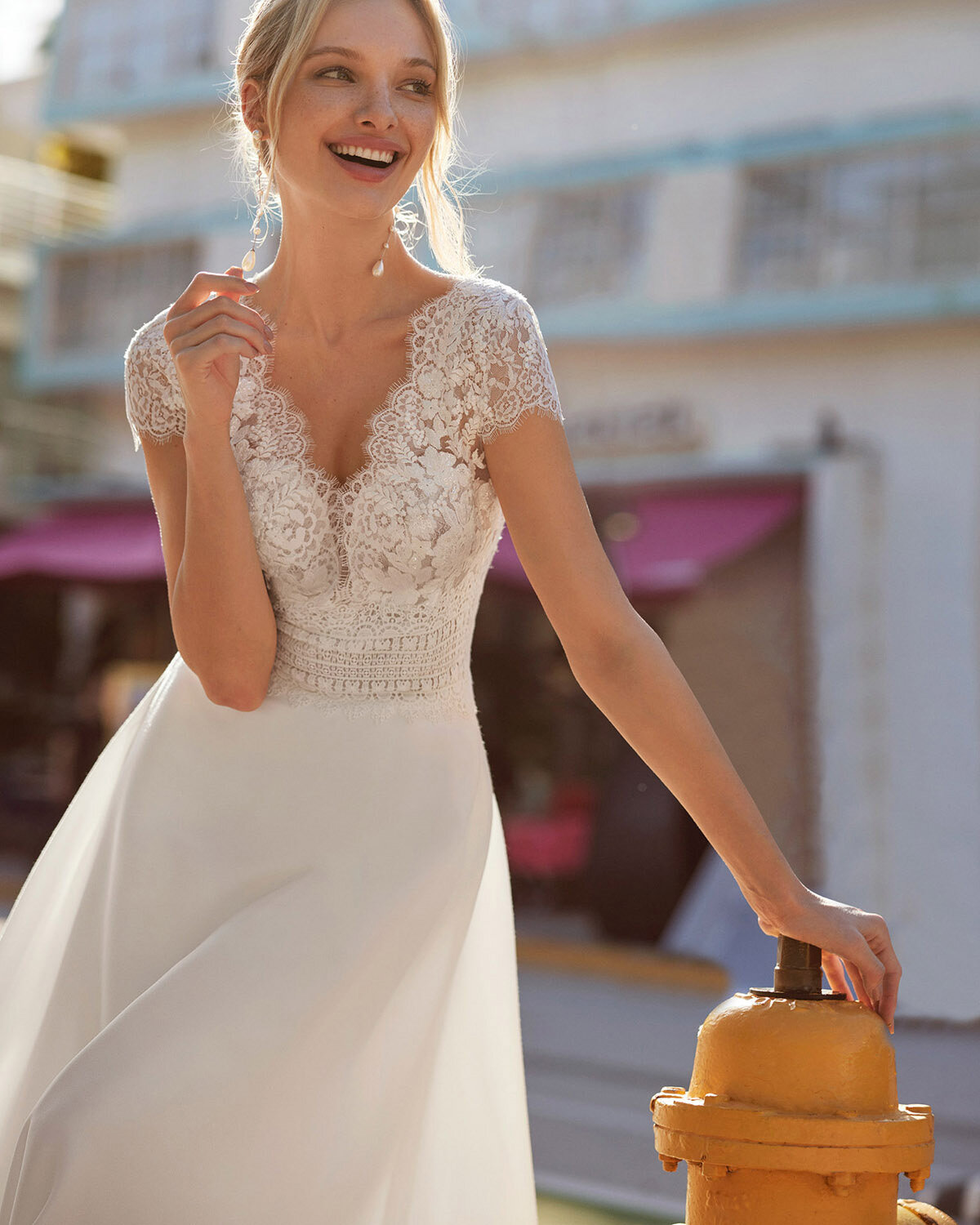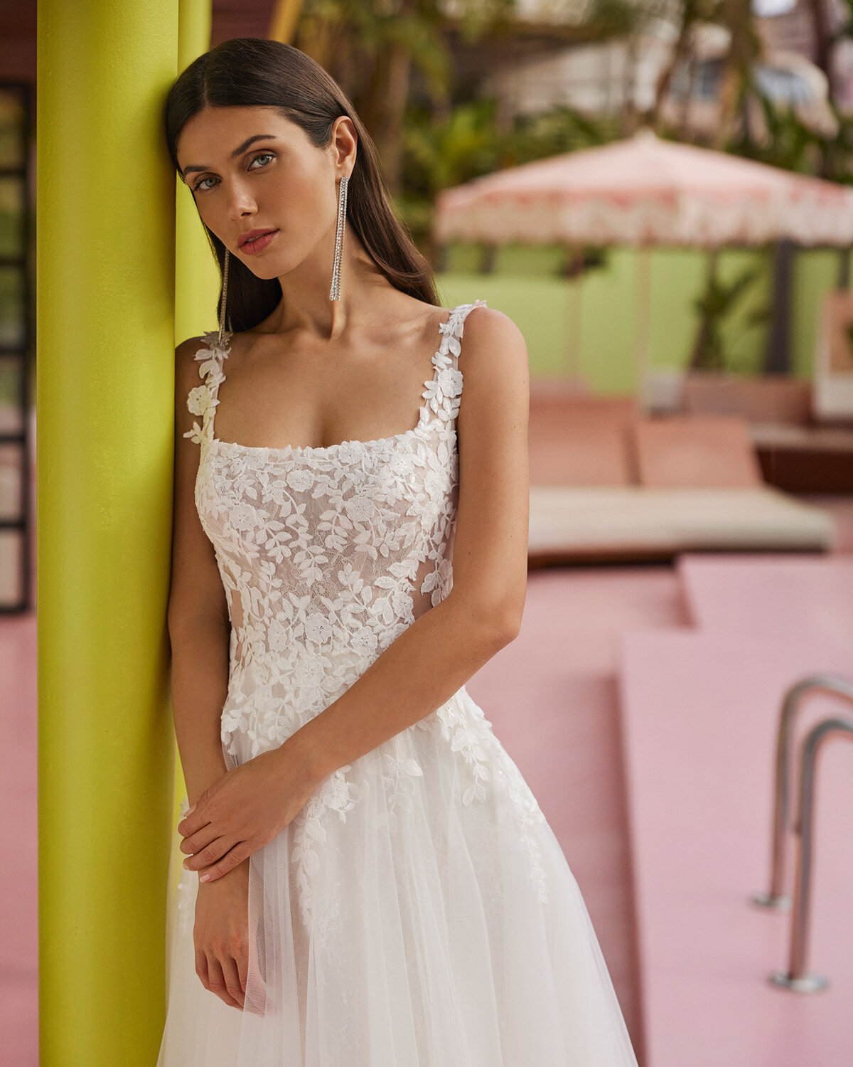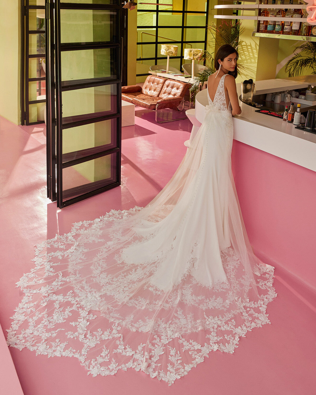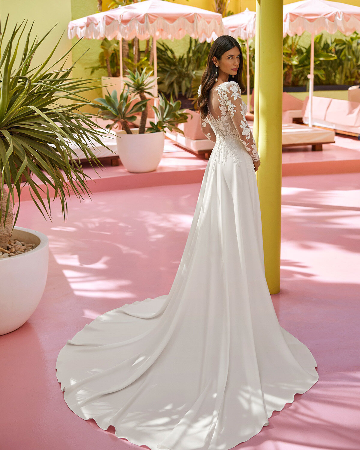 Luna Novias propose des robes actuelles, fluides, délicates.