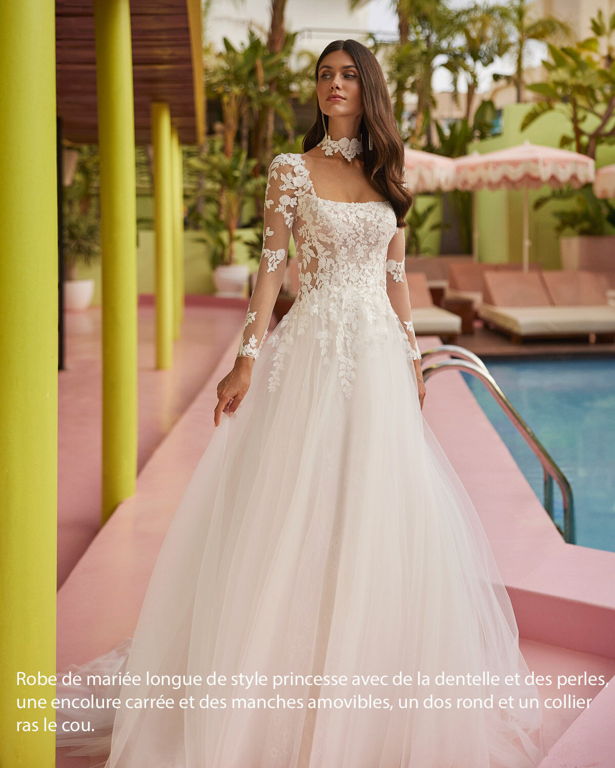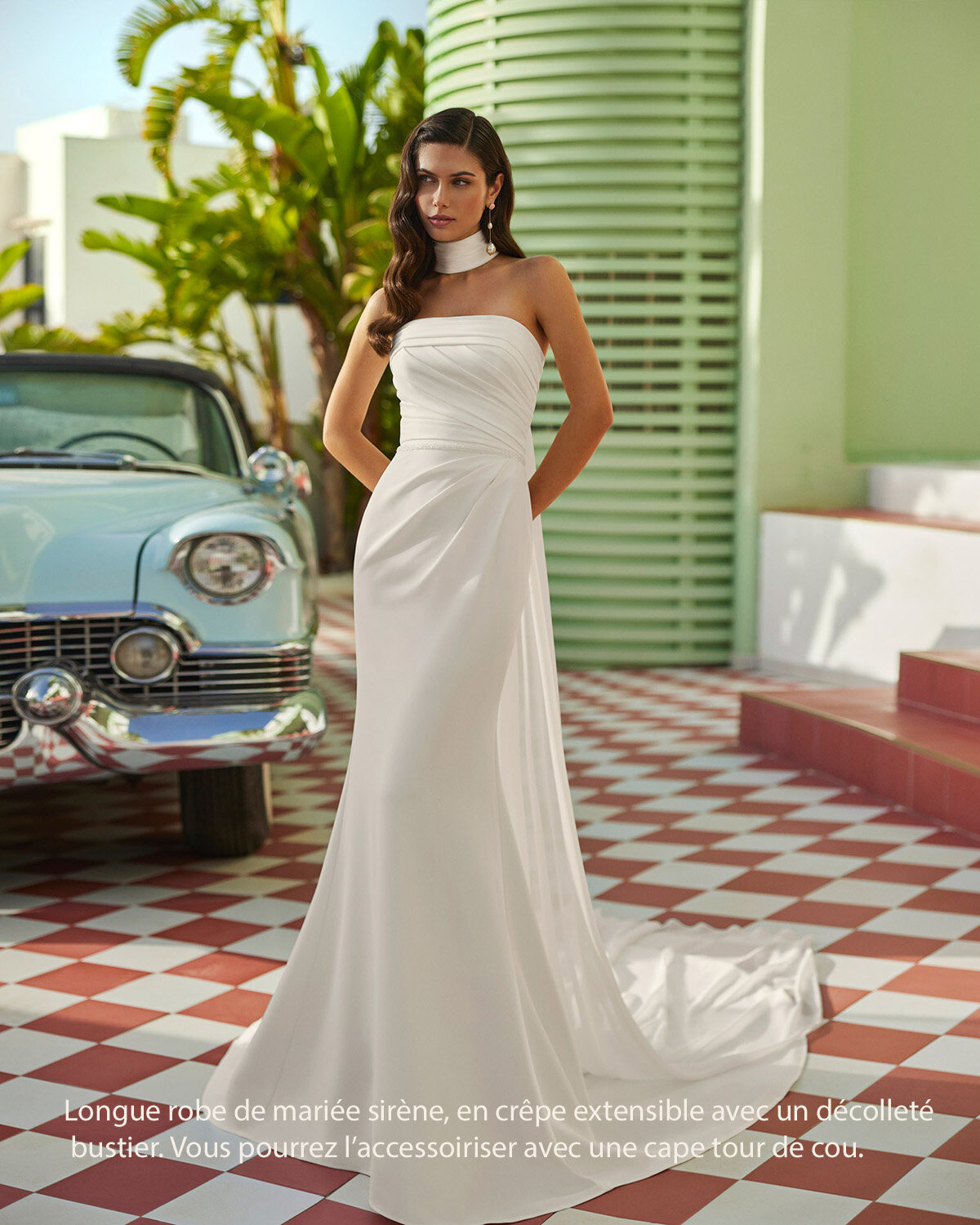 Ses lignes vont de l’empire classique aux sirènes marquant les silhouettes et le corps de la femme. Elles mettent en valeur les robes bustier, les décolletés en cœur, les encolures bateau, les dos échancrés en V ou carré. Elles sont enrichies par la diversité et la qualité des tissus proposés qui peuvent être agrémentés d’applications de dentelles ou de bijoux.